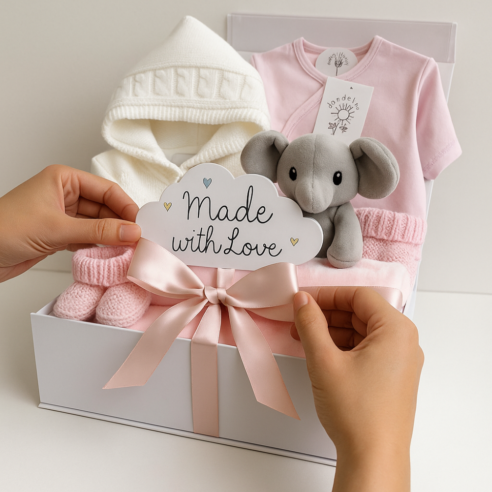 From Me Too You creates beautifully hand-packed baby hampers filled with soft essentials and keepsakes. Every box is made with care in the UK — the perfect baby gift for new parents to treasure.