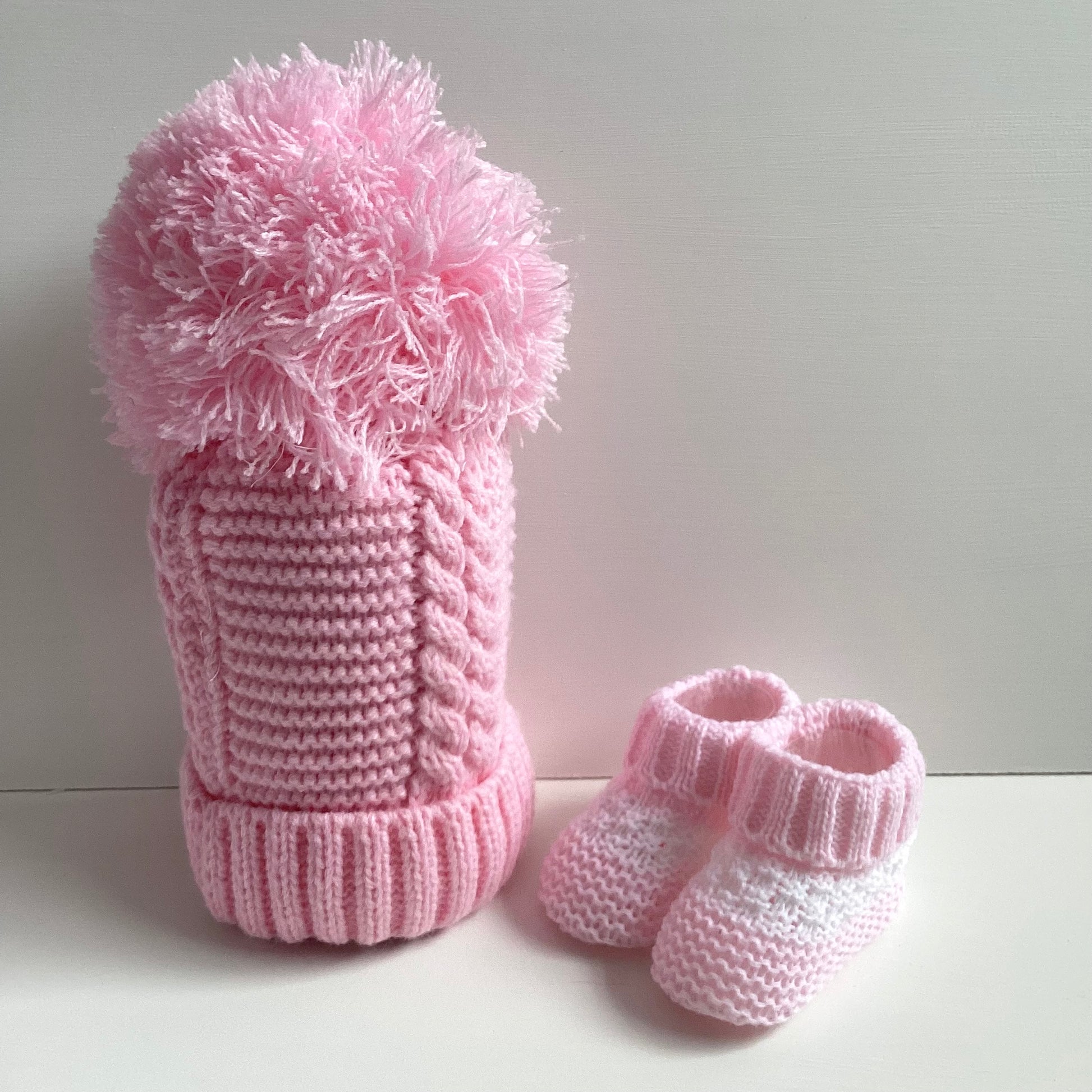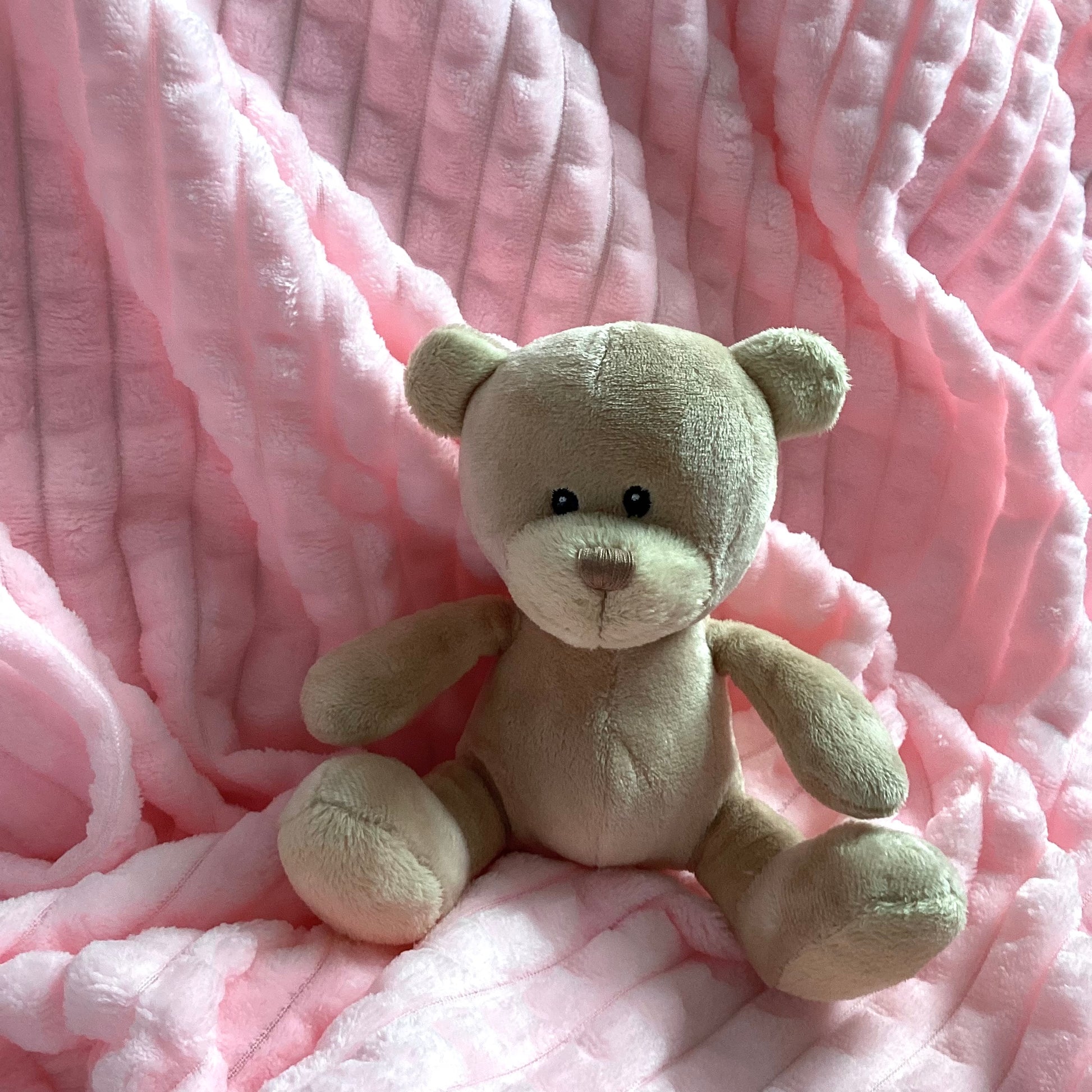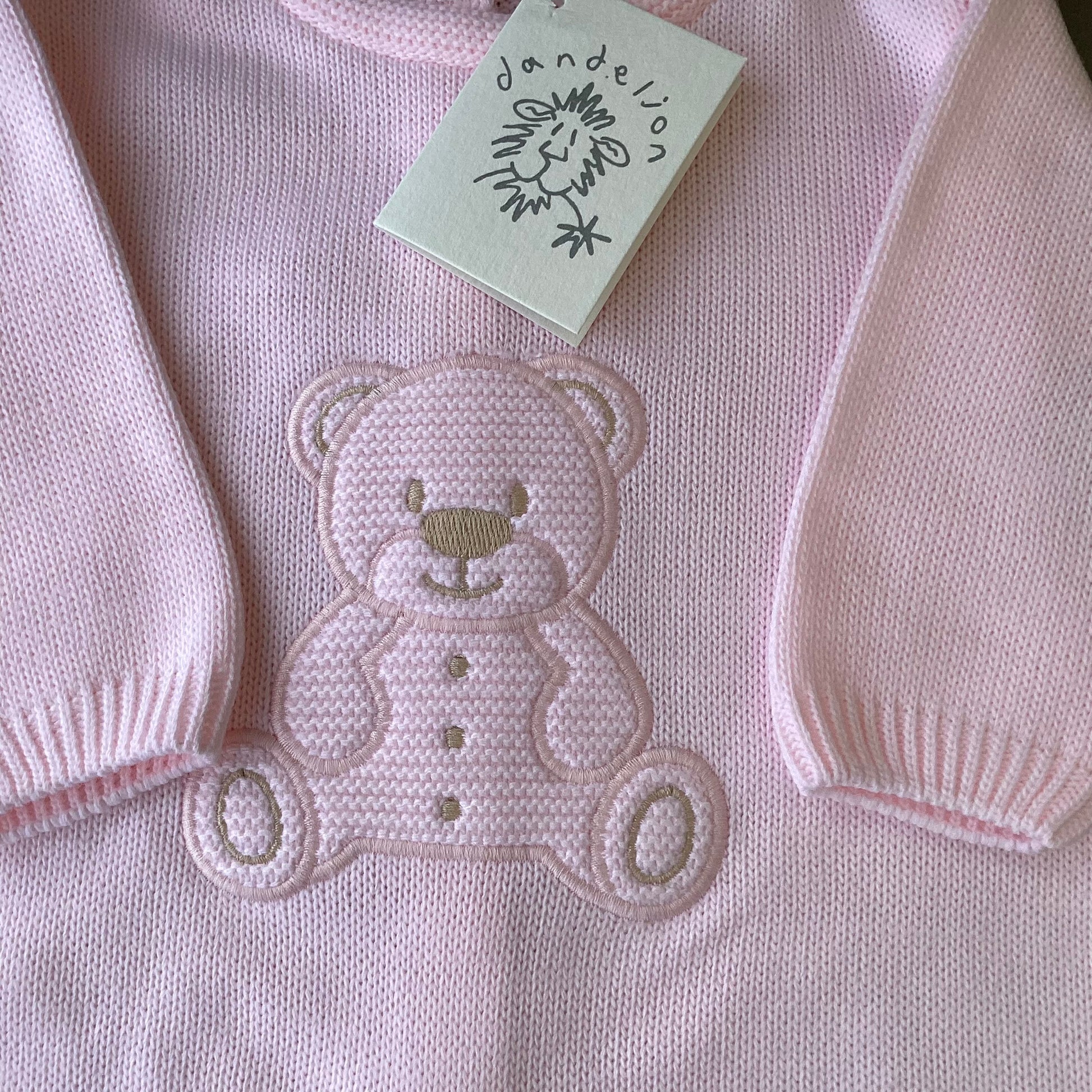 Our designer clothes are of high quality and made by Dandelion clothing. This gorgeous pink knitted onsie with teddy motif is a stunning outfit for a day out with a new baby. For extra warmth on a chilly day wrap baby up in the waffle blanket which is the softest blanket you could wish for. Matched together with our knitted pink bobble hat and the cutest knitted pink and white booties makes the perfect outfit to be the smartest baby in town. This stunning gift box also includes the gorgeous cuddly fleece bear who is just made for little hands to cuddle. 💕
