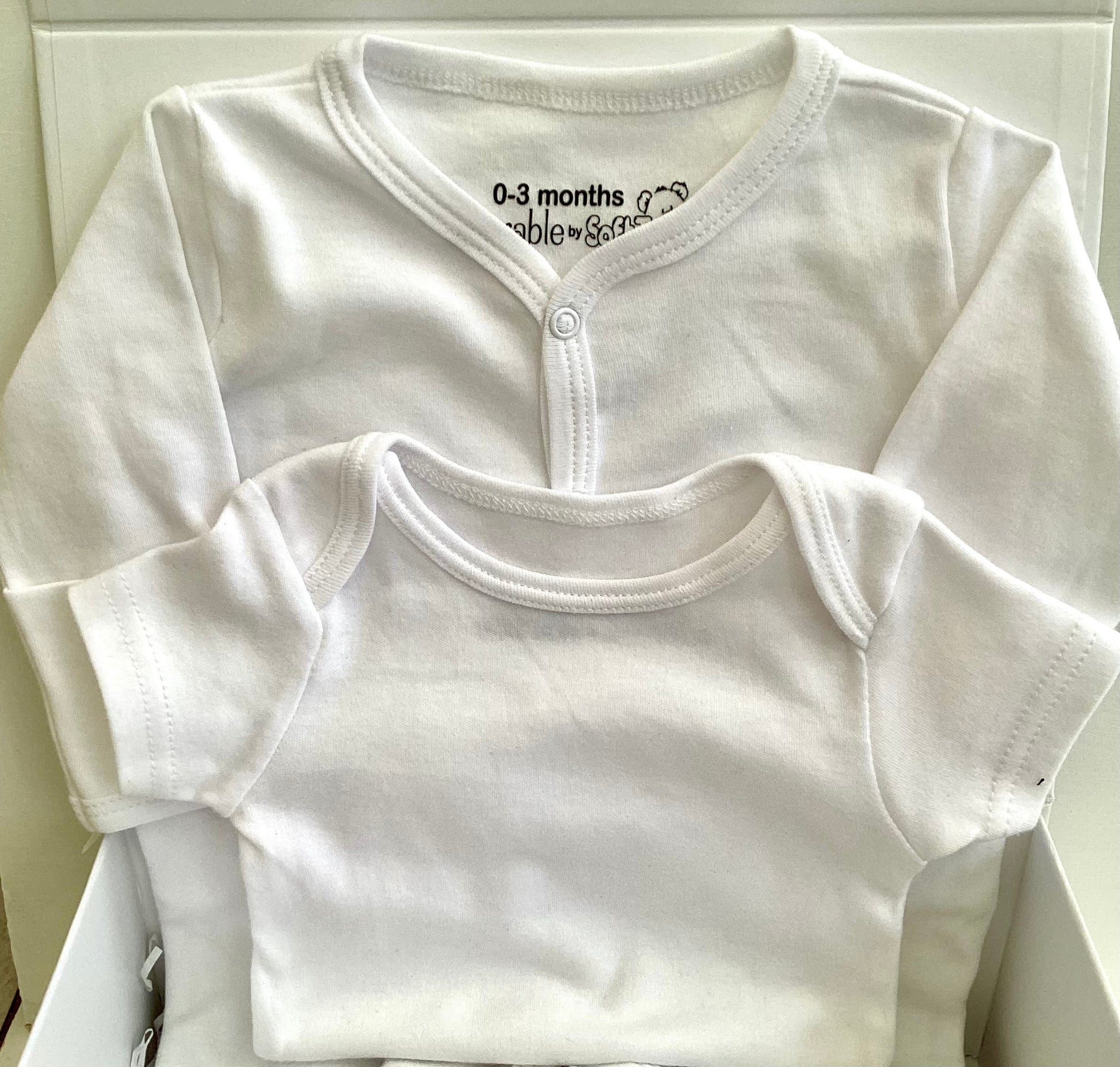 - 1 x White sleep suit aged 0-3 months